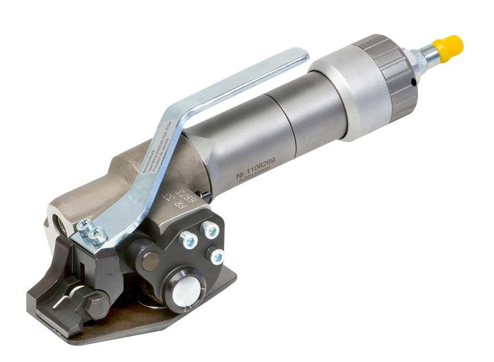 适用于圆弧面和平面的气动钢带打包工具需要欧诺个分离式组合打包工具PPZ或者SPZ-W一起使用。